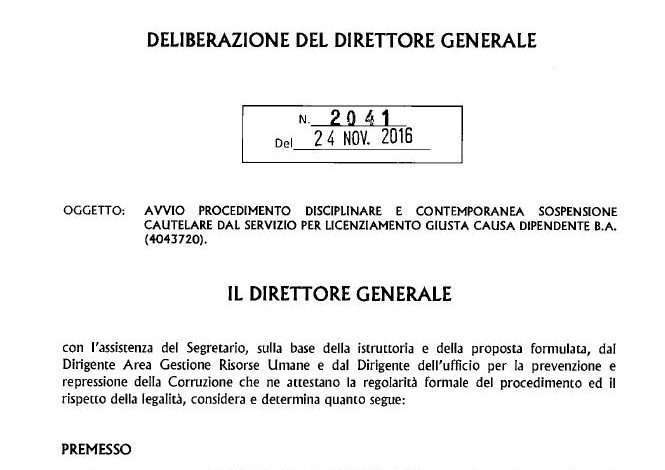DG: “Arrecata grave lesione all’immagine dell’Azienda Sanitaria Locale di Bari”