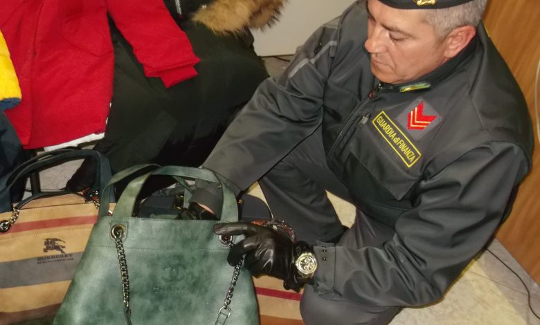 All’interno del bagagliaio dell’autovettura, occultati in bustoni di plastica, sono stati rinvenuti 130 articoli, tra borse, borselli, scarpe, cappelli e giubbotti di vari marchi palesemente contraffatti.