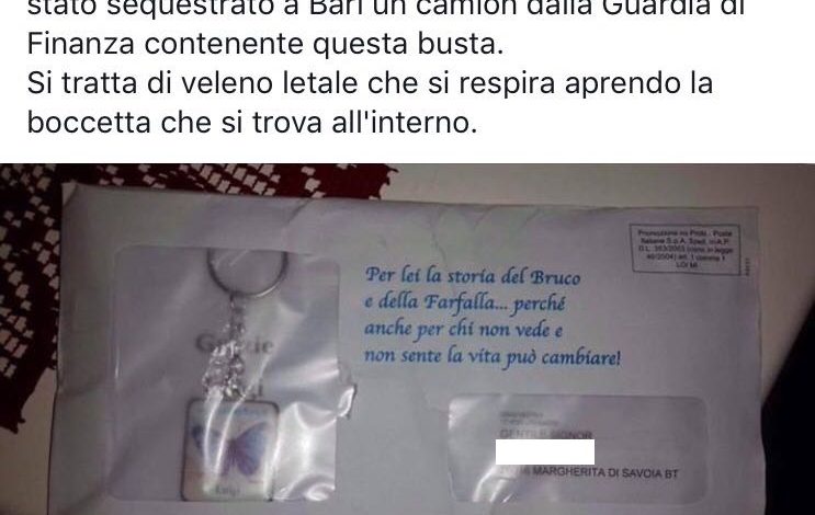 ATTENZIONE – “Fate girare non è una bufala: Questa busta contiene veleno”, la Polizia Postale interviene
