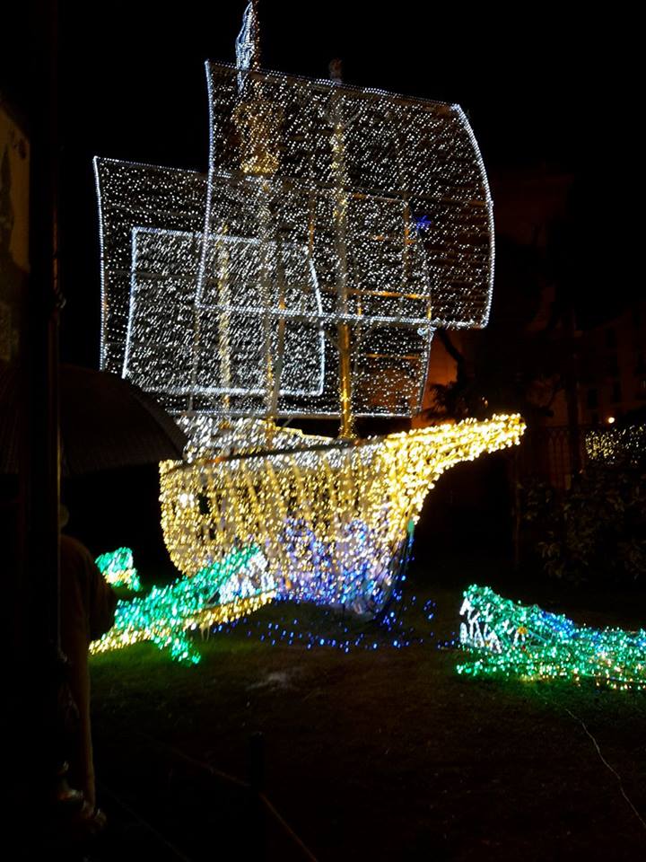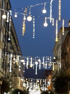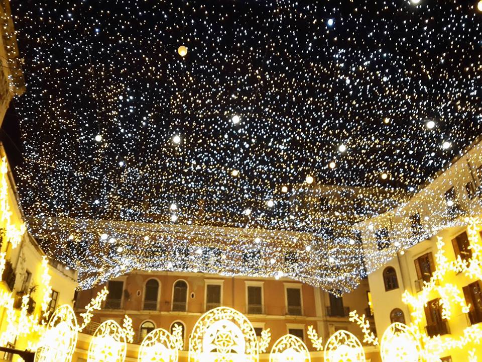 Giungendo poi alla vicina Piazza Flavio gioia, si può ammirare l’enorme reticolato di luci che sovrasta le teste degli spettatori, accompagnato alla base da una vasta serie di spettacolari archi luminosi e luci dalla forma di ramoscelli d’albero, che lascia davvero senza parole.