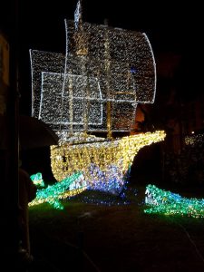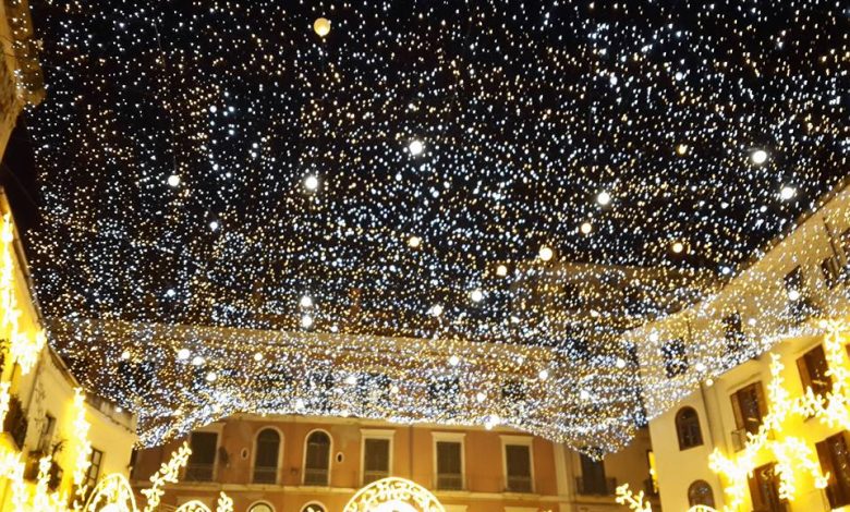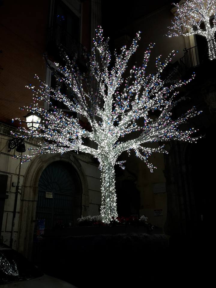 Si assiste a un immenso spettacolo di colori in tutto il percorso, fino ad arrivare al gigantesco albero illuminato sul finire del Corso, in Piazza Sedile.
