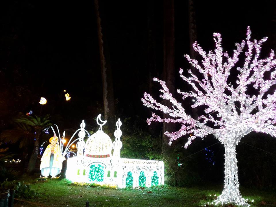 Ma lo spettacolo più grande lo si può apprezzare nell’estesissima villa comunale cittadina, in Piazza Umberto I: nei suoi giardini si possono ammirare le creazioni più fantasiose e originali: luminarie di notevoli dimensioni che rappresentano una balena, un veliero, dei cavalli che trainano una carrozza, il Big Ben, delle carte da gioco, il Taj Mahal, gnomi e personaggi di fantasia, tazzine da caffè, un gigantesco e bellissimo cigno, e tanto altro ancora.