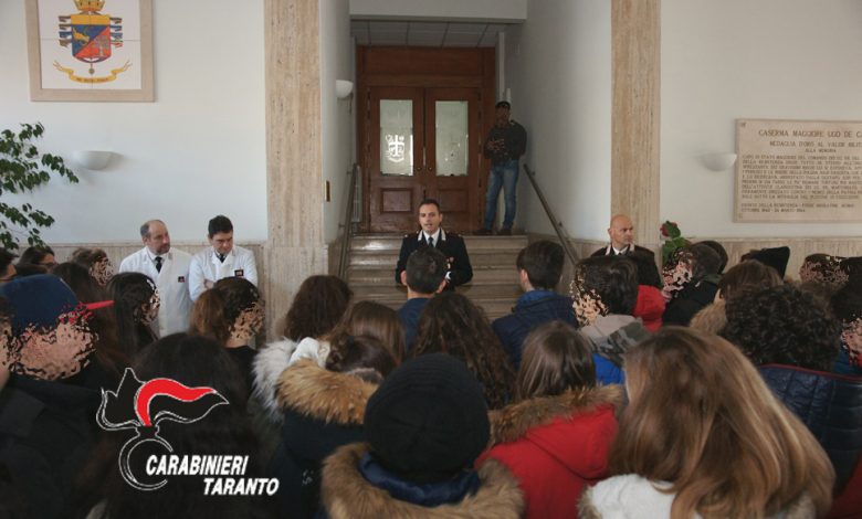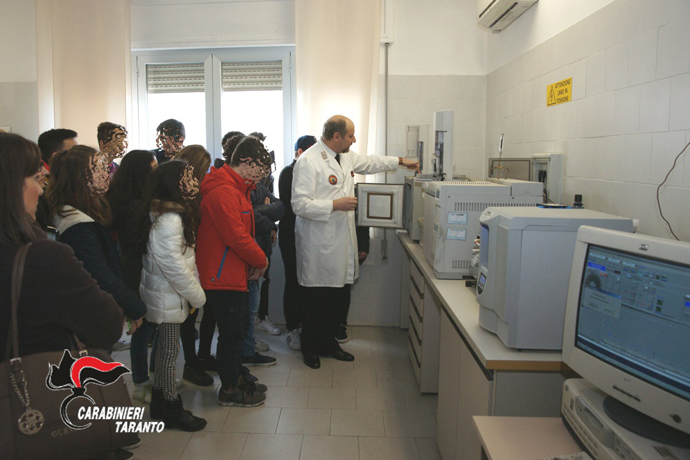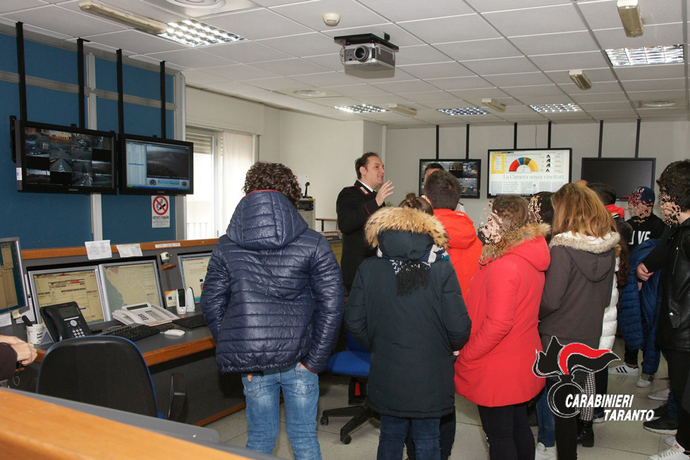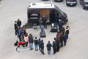 Un gruppo di alunni della Scuola Media Statale “C. Colombo” di Taranto, nei giorni scorsi, presso la caserma “MOVM De Carolis”, sede del Comando Provinciale Carabinieri di Taranto, ha incontrato i militari nell’ambito di iniziative per la formazione della cultura della legalità. I ragazzi, accompagnati da tre insegnanti di italiano, hanno avuto modo di visitare il Comando Provinciale ed i reparti presenti all’interno. E’ stata illustrata l’organizzazione, sia locale che nazionale, dell’Arma dei Carabinieri ed in particolare i compiti svolti dal Nucleo Operativo e Radiomobile, dalla Centrale Operativa, dal Laboratorio di Analisi, ed in generale da tutti i reparti della sede. Tale iniziativa, svolta già da tempo, coinvolge soprattutto scuole elementari e medie; gli interventi sono calibrati anche in base all’età della platea, con argomenti attuali e di interesse per gli adulti di domani. L’incontro è stato accolto con grande entusiasmo dai giovani studenti: in occasione della visita guidata all’interno del Comando Provinciale dei Carabinieri di Viale Virgilio, i ragazzi hanno avuto modo di conoscere i mezzi in dotazioni all’Arma, il funzionamento delle comunicazioni della Centrale ed in generale gli aspetti e le peculiarità del servizio quotidiano svolto dai Carabinieri.