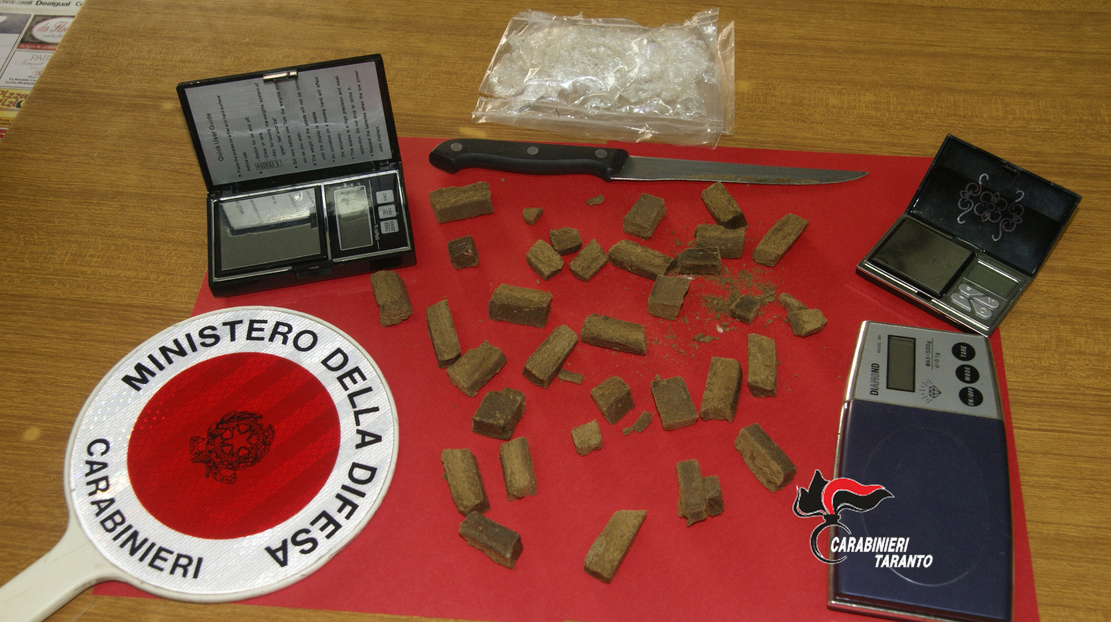 I militari, nel corso di attività info-investigativa, erano venuti a conoscenza che l’uomo aveva messo in piedi un’attività di spaccio e per tali motivi hanno deciso di approfondire la notizia. Avuta contezza del fatto che lo stesso aveva in uso alcuni locali nel centro storico di Castellaneta, i militari hanno deciso di procedere alla perquisizione degli stessi. L’attività non ha tardato a dare i suoi frutti infatti i militari hanno rinvenuto e sequestravano 125 grammi di sostanza stupefacente del tipo hashish, tre bilancini di precisione ed un coltello intriso della medesima sostanza, il tutto sottoposto a sequestro in quanto ritenuto pertinente all’attività illegale sino a quel momento posta in essere dal 26enne.