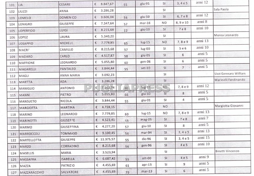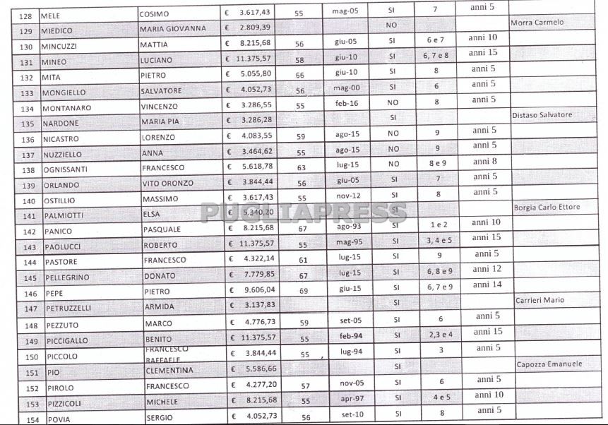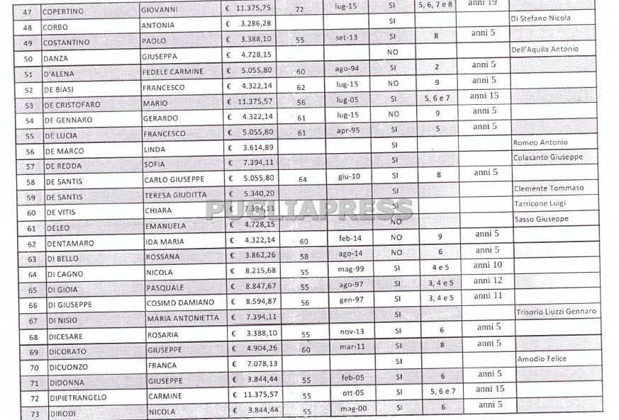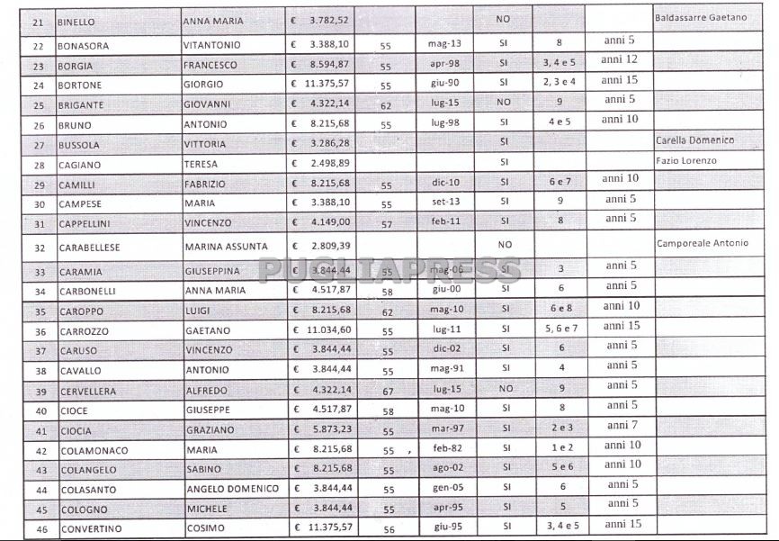 Dipietrangelo Carmine: 11.375,57 euro, in pensiona a 55 anni da ottobre 2005; 5, 6, 7, 15 anni in Regione