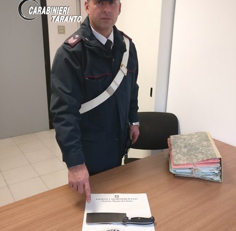 Al loro arrivo, dopo aver generalizzato lo straniero, hanno provveduto a perquisirlo rinvenendo, occultata sotto la giacca, una mannaia della lunghezza di trenta centimetri e con una lama lunga diciotto centimetri. Il 22 rumeno, al termine delle formalità di rito, è stato denunciato in stato di libertà alla Procura della Repubblica di Taranto per porto abusivo di armi.