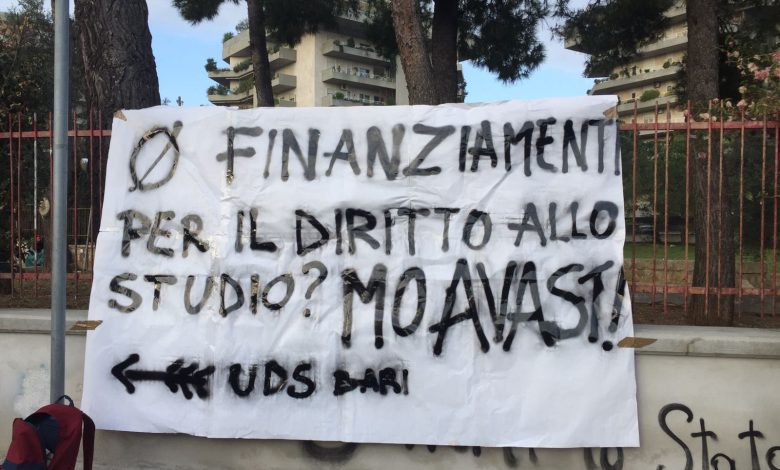“Abbiamo calato degli striscioni dalle scuole di Bari per lanciare la nostra campagna per il diritto allo studio nella nostra Città. Il messaggio è chiaro: come studenti e studentesse di questa città non possiamo più sopportare il silenzio assordante dell’Amministrazione Metropolitana in materia di diritto allo studio” afferma Davide Lavermicocca, coordinatore dell’Unione degli Studenti Bari.