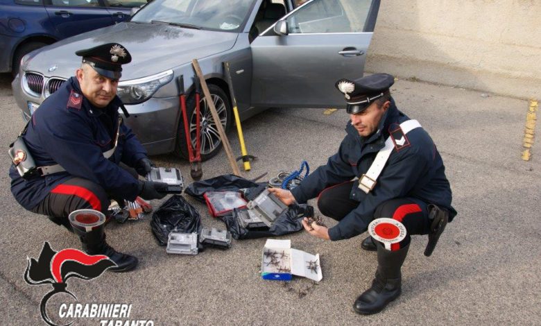 I ladri, però, sono stati sorpresi da una pattuglia dell’Aliquota Radiomobile della Compagnia Carabinieri di Massafra, che, impegnata in predisposti servizi di prevenzione e repressione dei reati, segnatamente contro il patrimonio, si trovava a transitare in quel centro.