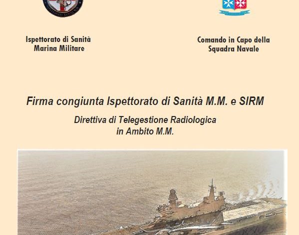Il 25 febbraio 2017, alle 10.30, a bordo della Portaerei Cavour ormeggiata presso la Stazione Navale Mar Grande di Taranto, sarà firmata la “ Direttiva di Telegestione Radiologica in ambito Marina Militare”, redatto sulla base delle esperienze di Forza Armata in Telegestione delle prestazioni radiologiche, in attuazione delle normative vigenti ed in piena coerenza con la specificità d’istituto dello strumento militare.