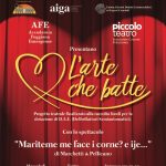 È in programma domani sera, 1 marzo 2017, alle ore 20.30, al Teatro “Giordano”, lo spettacolo “Marìteme me féce i córne? E ìje…”, di Enzo Marchetti e Michele Pellicano, messo in scena dalla l’Associazione Culturale “Palcoscenico” del “Piccolo Teatro” con l’obiettivo benefico di raccogliere fondi per il progetto “L’arte che batte”.