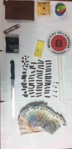 Il secondo arresto è stato effettuato a Orta Nova. Qui i militari, al termine di un accurato servizio di osservazione, hanno colto in flagranza di reato DI NOIA Tommaso, classe ’87, del luogo, con precedenti specifici. Il DI NOIA a seguito di una perquisizione personale è stato trovato in possesso di 54 grammi di hashish e di 4 dosi di cocaina, del peso di 2,5 grammi. Allo stesso sono stati anche sequestrati 470 Euro in banconote di piccolo taglio un bilancino elettronico. L’arrestato, in questo caso, a causa dei citati precedenti specifici, è stato portato presso la Casa Circondariale di Foggia.