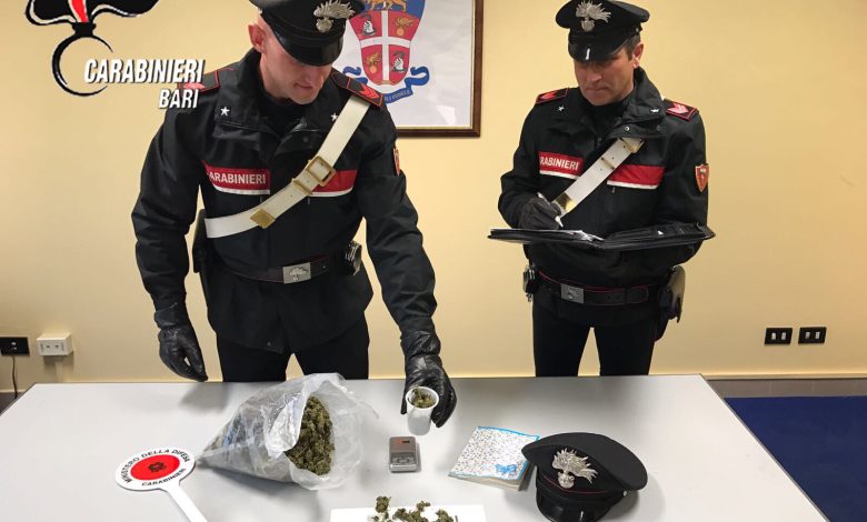 I Carabinieri del Nucleo Operativo e Radiomobile della Compagnia di Trani hanno arrestato due persone per aver violato la normativa in materia di sostanze stupefacenti. Le indagini dei militari si erano concentrate da un po’ di tempo su di una palazzina della zona popolare di Corato a causa del continuo andirivieni di persone fino a notte inoltrata. A questo poi si sono aggiunte le lamentele dei cittadini della zona e per tali ragioni è stato predisposto un servizio di osservazione culminato in una mirata verifica delle abitazioni di due soggetti in particolare. Dopo aver appurato che i predetti, rispettivamente di 51 e 42 anni, fossero presenti presso i loro domicili, siti al 3° e 4° piano dello stesso condominio, sono state effettuate approfondite perquisizioni per la ricerca di droga: nel corso delle operazioni, svolte simultaneamente negli appartamenti degli interessati, sono stati rinvenuti, all’interno dei rispettivi ripostigli, complessivi 450 grammi di marijuana di cui 10 grammi a casa del più anziano dei due, già gravato da alcun precedenti penali, unitamente a vario materiale per il confezionamento ed un’agendina con i nomi dei vari acquirenti. Nell’appartamento del giovane il quantitativo più corposo di stupefacente era occultato in un bustone di cellophane, per un peso complessivo di circa 440 grammi di infiorescenze e foglie. Attese le modalità della condotta accertata, non sono state ritenute plausibili le giustificazioni dei due uomini, che affermavano che si trattasse di un possesso per uso personale. Sono scattate, quindi, le manette per detenzione di sostanze stupefacenti ai fini di spaccio.