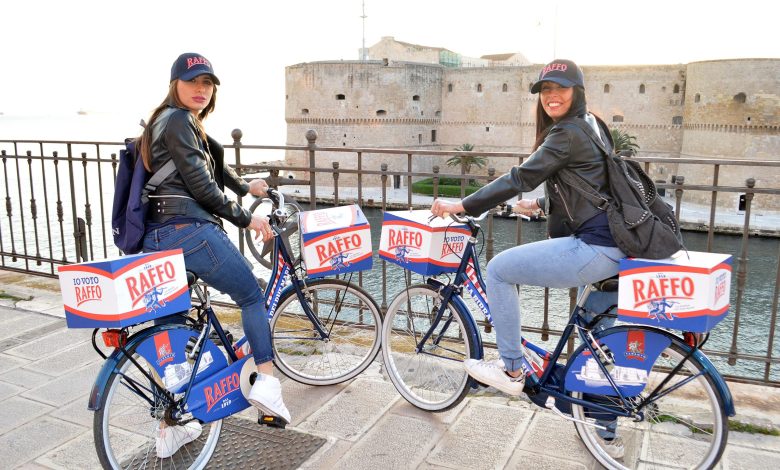 Taranto – Le nuove bottiglie Raffo arrivano in città in bici e su un van d’epoca | FOTO