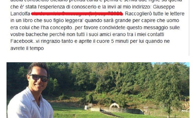 L’idea che il piccolo possa crescere e domandarsi un giorno chi sia stato suo padre ha spinto lo zio a chiedere l’aiuto delle persone che hanno conosciuto Stefano: “Ho solo un desiderio in questo momento- scrive Giuseppe attraverso il suo profilo facebook – poiché mio nipote non avrà ricordi del padre vorrei che chiunque abbia conosciuto Stefano prenda carta e penna e scriva due righe su quella che è stata l’esperienza di conoscerlo e la invii al mio indirizzo”