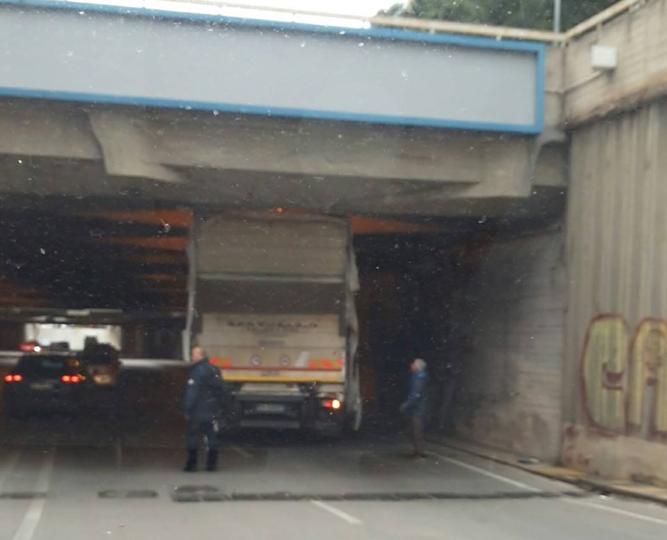 Taranto – Camion resta incastrato sotto il ponte in Via Dante | FOTO
