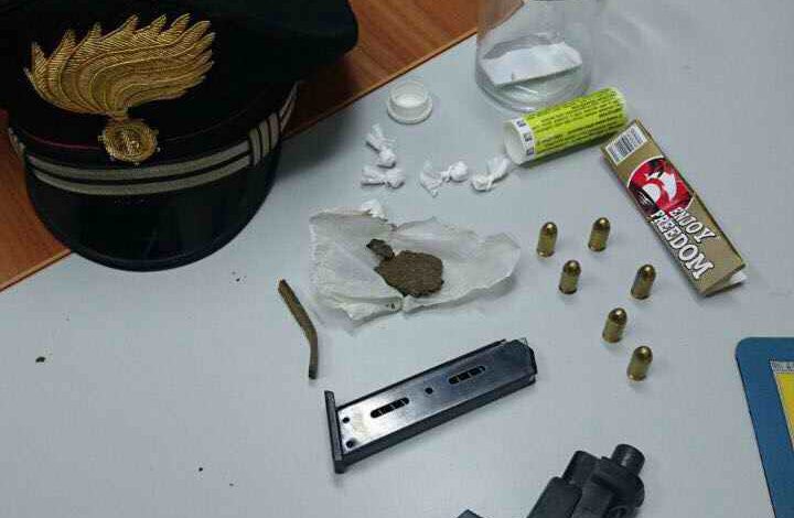 Nel corso del servizio è stato tratto in arresto CAPODIVENTO ANTONIO, cl. ’67, pregiudicato di Trinitapoli. Nel corso di una perquisizione nell’abitazione del Capodivento, dove lo stesso si trovava sottoposto agli arresti domiciliari, il fiuto del cane antidroga ha permesso di scovare 2,5 grammi di cocaina, già suddivisa in dosi, e 9 grammi di hashish. Nell’approfondire la perquisizione, poi, i militari hanno poi trovato anche una pistola modificata, perfettamente funzionante, provvista di caricatore con all’interno sei cartucce. Per tale ragione, Capodivento, su disposizione del Pubblico Ministero di turno, è stato rinchiuso nel carcere di Foggia. Dovrà rispondere di detenzione abusiva di arma clandestina e di detenzione ai fini di spaccio di stupefacenti.