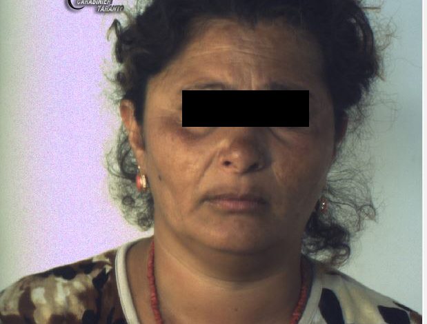Questa mattina i Carabinieri di Taranto hanno arrestato una donna di 45 anni, di nazionalità bosniaca, Sara Hosovic, senza fissa dimora, e domiciliata in un campo nomadi situato in provincia di Bari.