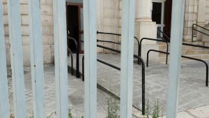 Entrando nel Distretto socio sanitario dall’unico accesso attualmente e da anni disponibile a causa della recinzione, ovvero da vico Pozzo Sant’Agostino, si è costretti per raggiungere l’ufficio protesi a percorrere un lungo corridoio per poi prendere 2 ascensori sempre che siano entrambi funzionanti.