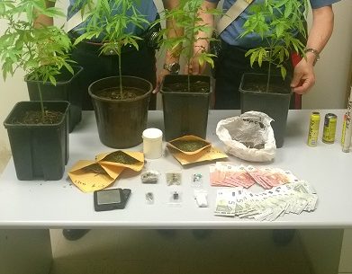 Nel corso di una perquisizione domiciliare, i predetti sarebbero stati trovati in possesso di 4,04 gr. di hashish, 7 gr. di stupefacente sintetico del tipo MDMA, 0,7 gr. di anfetamine, 28 semi di cannabis indica, complessivi 132,8 gr. di cannabis indica suddivisa in vari involucri, 5 piante di cannabis indica e un bilancino elettronico di precisione, il tutto sottoposto a sequestro.