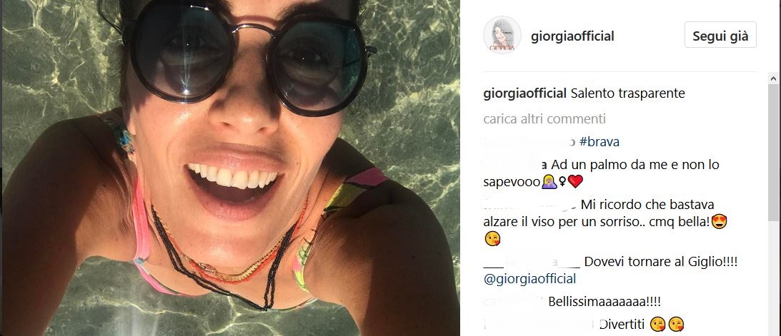 E’ arrivato il tempo di una bella pausa estiva anche per la Whitney Houston italiana, Giorgia Todrani, in arte solo “Giorgia”. La regina del soul bianco nostrano decide, dopo il suo ultimo lavoro discografico “Oro nero”, di prendersi una meritatissima pausa scegliendo le acque “trasparenti” del Salento come cornice estiva per le vacanze sue e quelle del figlio ovviamente al seguito.