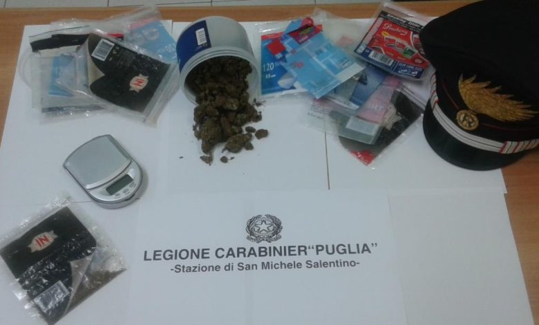 L’uomo, in seguito a una perquisizione personale e veicolare operata nel centro cittadino di San Michele Salentino, sarebbe stato trovato in possesso di pochi grammi di marijuana, ma al termine della successiva perquisizione presso la sua abitazione, sarebbero stati rinvenuti circa 50 grammi della stessa sostanza, nonché vario materiale utile per il confezionamento, il tutto sottoposto a sequestro.