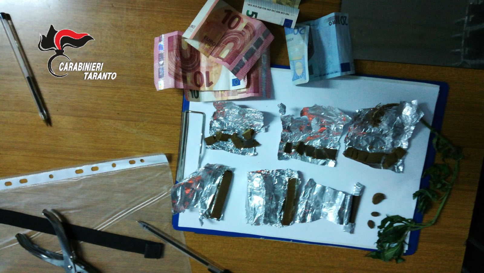 In particolare, i Carabinieri, nel corso di specifico servizio di osservazione, predisposto in Castellaneta Marina, luogo di ritrovo della movida estiva, notavano il ragazzo che con eccessiva cautela e avvedutezza si aggirava nella zona posta sotto controllo. Ad un certo punto i militari decidevano di intervenire, sottoponendo il 31enne ad una perquisizione personale, all’esito della quale venivano rinvenuti, occultati sulla persona, 6 pezzi di hashish di circa trenta grammi di peso complessivi, cinquantacinque euro in contanti in banconote di vario taglio, somma ritenuta il provento dello spaccio di stupefacenti, ed una pianta di marijuana, alta 25 cm circa, celata in uno zainetto.