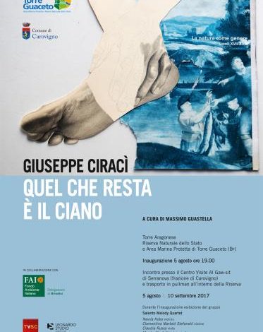 Il Consorzio di Gestione dell’area protetta presenta “Quel che resta è il ciano” mostra personale dell’artista Giuseppe Ciracì. Nell’esposizione saranno ordinate dieci opere del nuovo ciclo “Azzurro Cielo” dell’autore brindisino.