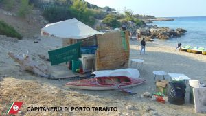 Il personale del Nucleo Difesa mare della Capitaneria di porto – Guardia Costiera di Taranto procedente ha quindi sentito il Sostituto Procuratore della Repubblica di Taranto di turno, eseguito il sequestro penale di tutta l’area abusivamente occupata, pari a circa 60 mq., intimandone l’immediato sgombero, comunque entro e non oltre le 24 ore successive, per la restituzione della stessa alla libera fruizione.