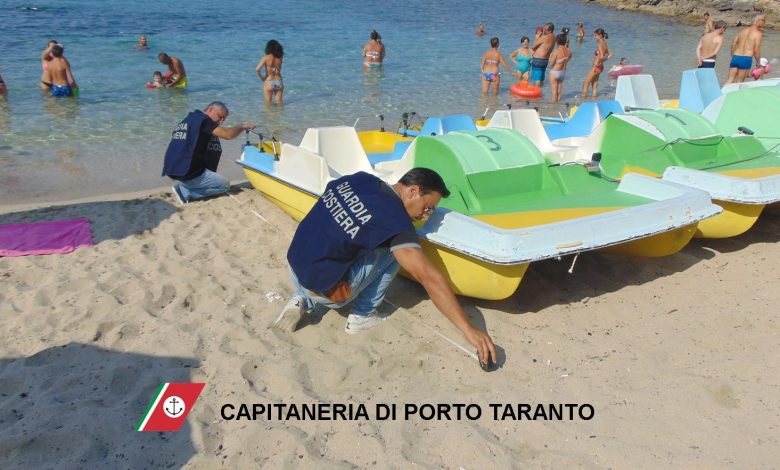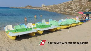 LEPORANO – Numerose segnalazioni sarebbero giunte alla Sala operativa della Capitaneria di porto – Guardia Costiera di Taranto relativamente alla presenza sulla spiaggia di un chiosco adibito a bar, verosimilmente abusivo, realizzato in località Porto Pirrone del Comune di Leporano, oltre ad alcuni pedalò riconducibili allo stesso titolare del chiosco, locati al pubblico, posizionati sull’antistante tratto di spiaggia pubblica e gestiti abusivamente in quanto in difetto alcun tipo di autorizzazione e concessione.