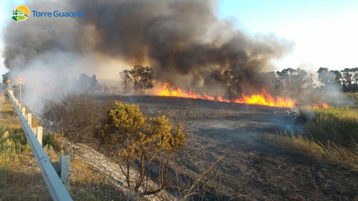 TORRE GUACETO- Nella giornata di ieri, è stato appiccato il fuoco nell’area protetta, zona a monte della strada statale 379.