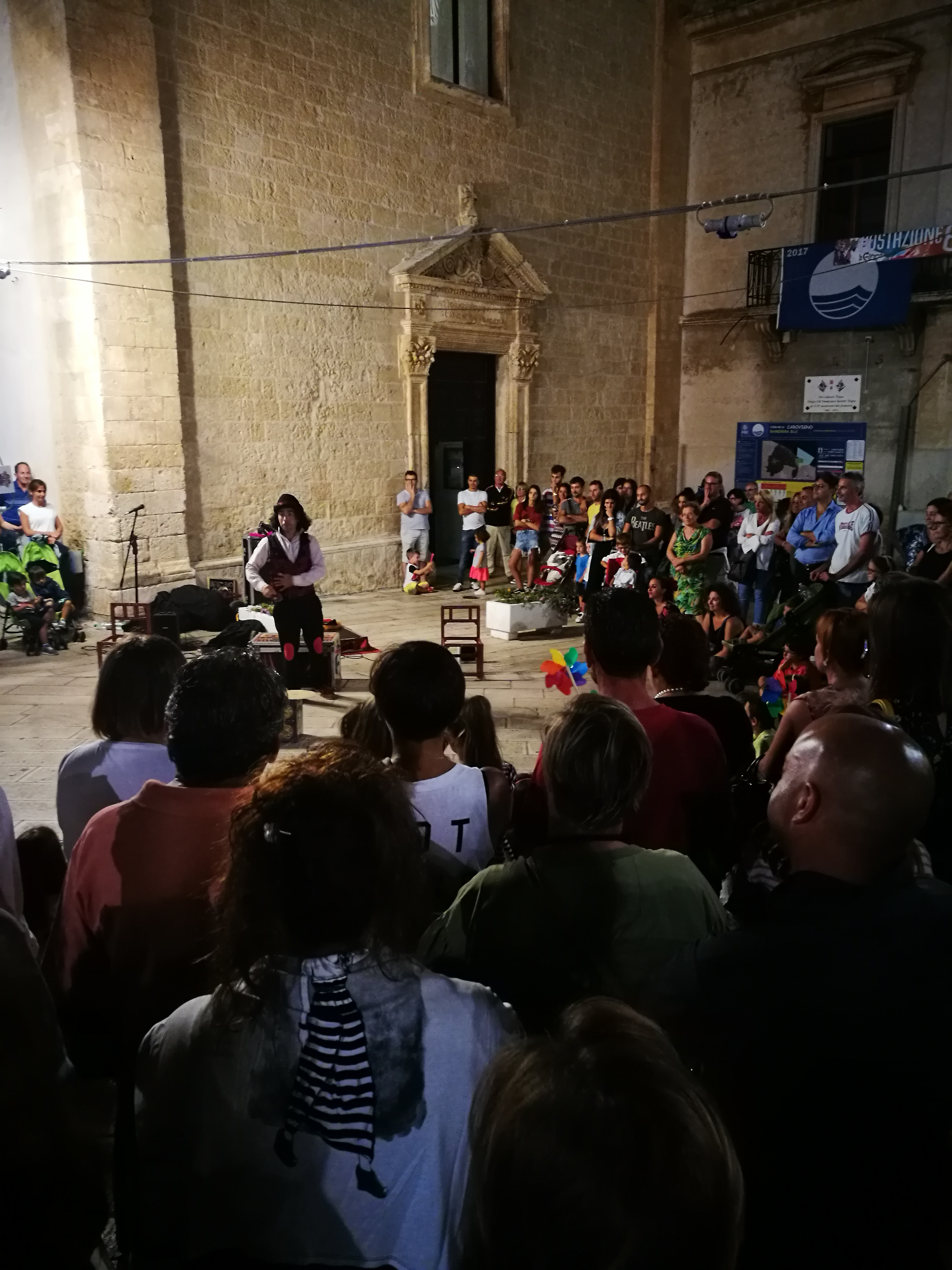 Il bellissimo castello Dentice di Frasso a pochi chilometri dalla Città Bianca di Ostuni è stato invaso da un pubblico pacifico ed entusiasta. La manifestazione è stata organizzata da Antonio Rubino unitamente alla Events & Promotion di Roma. La Girandola, il giocattolo che ognuno di noi ha avuto almeno una volta nella propria vita e ha fatto sognare i bambini di tutto il mondo, quella ruota di carta o plastica pensata per incanalare l’aria e roteare su un perno attaccato ad un bastoncino, ha conquistato grandi e piccini. Ancora una volta, l’obiettivo degli organizzatori è stato quello di promuovere un progetto benefico, in questa edizione la costruzione di un orfanotrofio in Congo, voluto da Frate Loren. Almeno due euro per una girandola per sostenere il progetto. Tutti dunque a soffiarci sopra, grandi e bambini per farla girare o orientarla ad un debole vento. Il festival ha sempre avuto, fin dalle origini uno slogan tratto dall’Opera buffa di Dario Fo: «Venite tutti in piazza tra due ore, vi riempirete gli occhi di parole, la gola di sospiri per amore e il cuor farà tremila capriole». Proprio in omaggio al grande artista e Premio Nobel scomparso il 13 ottobre del 2016 che quest’anno, l’organizzazione ha deciso di denominare il premio al grande attore menestrello.