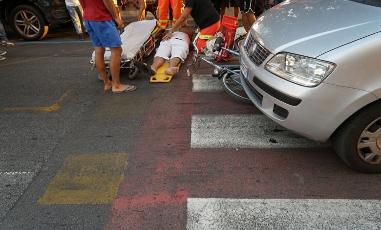 Procedendo in modo spedito non si sarebbe accorto della presenza di un’auto che si era fermata per consentire ad un pedone di attraversare la strada, finendo contro la macchina e cadendo per terra.