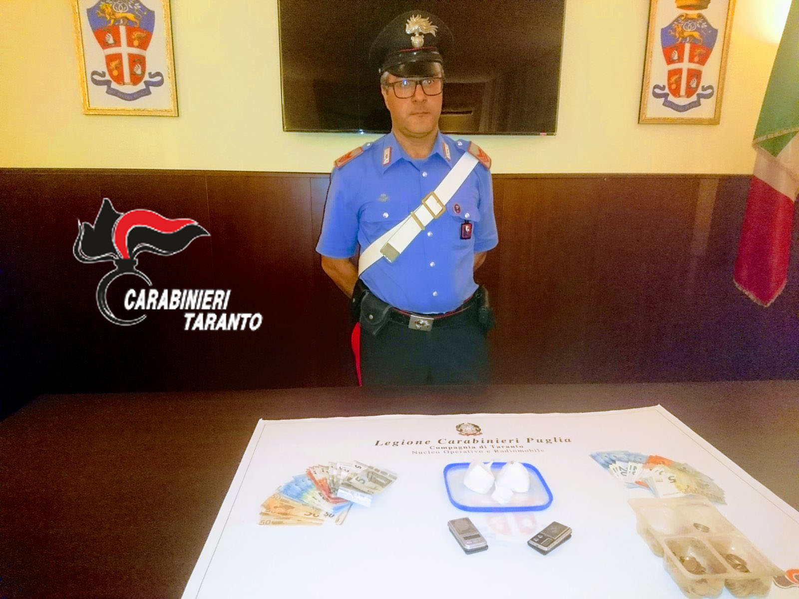 La sostanza stupefacente sequestrata sarà analizzata dai militari del L.A.S.S. del Reparto Operativo del Comando Provinciale Carabinieri di Taranto per stabilirne il principio attivo.