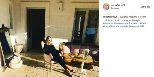 “Ti svegli la mattina e ti trovi così, in un posto da sogno” scrive la bellissima attrice su Instagram a corredo di una sua foto in cui viene ritratta in un zona appartata e assolata della struttura, indossando un abito scuro molto elegante e occhialini da sole.