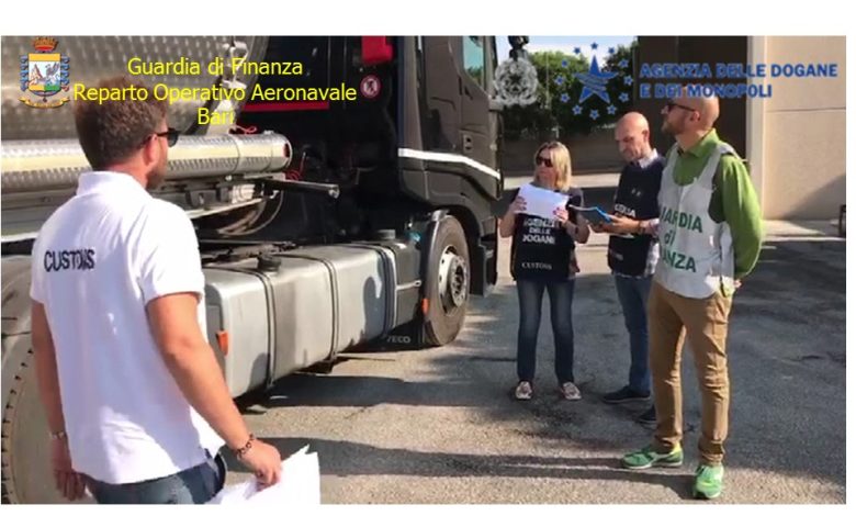 TARANTO – Le Fiamme Gialle della Sezione Operativa Navale di Taranto ed i Funzionari dell’Area Verifiche e Controlli dell’Ufficio delle Dogane di Taranto, all’esito di una complessa attività ispettiva scaturita da due anni di osservazioni e riscontri preliminari, hanno scoperto un articolato sistema di frode mediante il quale un’azienda locale aveva realizzato un’evasione di Accise ed IVA di oltre 1 milione di Euro, immettendo in consumo quasi 7.000 tonnellate di olio combustibile denso ricavato dalle acque di sentina e di lavaggio prelevate da navi dal 2013 ad oggi.