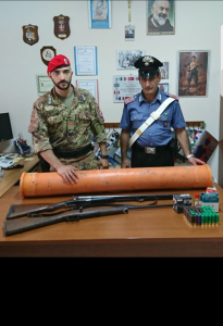 I militari, nell’ambito di alcune attività di perlustrazione e rastrellamento di zone periferiche ed impervie, hanno effettuato un’accurata perquisizione nella masseria dell’uomo, in località “Monte Pizzuto”. L’attività ha permesso di scovare, ben nascosto all’interno di un muro a secco, un tubo di plastica contenente una doppietta Beretta calibro 16, un fucile calibro 32 privo di marca, e oltre 50 cartucce calibro 16 e un kit per la pulizia delle armi. I fucili, ben manutenuti e perfettamente funzionanti, dai primi accertamenti sono risultati essere di provenienza clandestina.