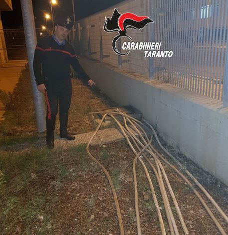 I militari, allertati dalla Centrale Operativa, si sarebbero recati in uno stabilimento industriale, in agro di Ginosa, dove avrebbero sorpreso il malfattore intento ad asportare numerosi cavi in rame da alcuni pozzetti posti all’interno del cortile dell’opificio.