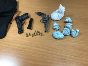 Novellino Cosimo, con dei precedenti per detenzione d’arma abusiva, sarebbe stato trovato in possesso di 350 grammi di eroina e 200 grammi di sostanza da taglio, tutti confezionati e pronti probabilmente allo spaccio. L’uomo avrebbe provato a disfarsi del borsello contenenti gli stupefacenti, lanciandolo dalla finestra della propria abitazione, ma sarebbe stato intercettato da alcuni agenti. Durante la perquisizione sarebbero state trovate due armi: una revolver perfettamente funzionante del 1890 e una pistola a salve modificata,semi automatica.