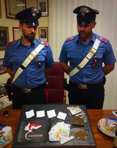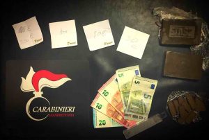 Nel corso di un servizio volto al contrasto del fenomeno dello spaccio di sostanze stupefacenti, effettuato soprattutto nei confronti di giovanissimi di Manfredonia, i Carabinieri, insospettiti dalla presenza del giovane nella zona Monticchio di Manfredonia, hanno proceduto al controllo dello stesso e del veicolo in uso. Poiché il ragazzo mostrava segni di insofferenza e tensione, i militari hanno deciso di procedere a una perquisizione, dapprima veicolare, rinvenendo sotto alla leva del cambio dell’auto una piccola stecca di hashish, e quindi personale, rinvenendo anche qui, ben occultato negli indumenti intimi, un involucro di cellophane contenente altre 11 stecche dello stesso tipo di quella rinvenuta nell’auto. Oltre alla sostanza stupefacente, i Carabinieri hanno anche trovato 80 euro in banconote di piccolo taglio e alcuni bigliettini riportanti delle cifre in euro. Avuta così conferma che il giovane evidentemente si dedicava allo spaccio, si è proceduto anche con perquisizione presso la sua abitazione dove, in camera da letto, è stato scoperto ancora altro hashish, due panetti da 100 grammi l’uno, oltre all’attrezzatura utilizzata per il taglio della droga e la preparazioni delle dosi.