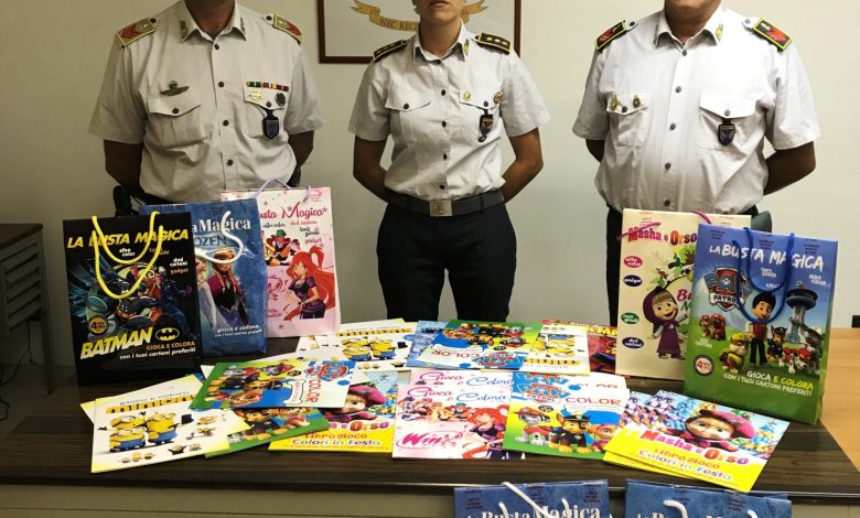 MARTINA FRANCA – Militari del Nucleo di Polizia Tributaria di Taranto e della Compagnia di Martina Franca, all’esito di un’attività di controllo finalizzata al contrasto dei traffici illeciti, hanno individuato due attività commerciali, entrambe con sede a Martina Franca, presso le quali sono stati rinvenuti 78.000 articoli tra opuscoli, album da disegno e “buste sorpresa” riportanti personaggi di fumetti o di cartoni animati (Masha e Orso, Frozen, Minions, Batman, Winx Club, Pokemon) privi di licenza o autorizzazione da parte dei soggetti titolari di copyright.