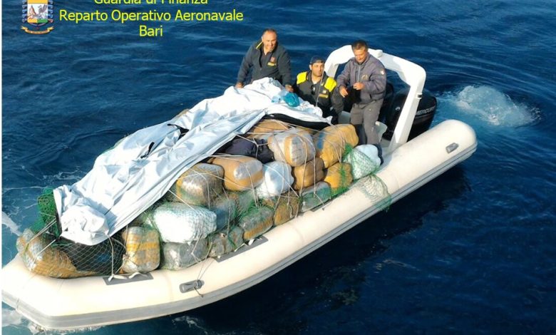 MOLA DI BARI – Un Guardacoste del Reparto Operativo Aeronavale della Guardia di Finanza di Bari, impegnato in una ordinaria missione finalizzata alla sorveglianza delle Frontiere e al contrasto dei traffici illeciti perpetrati via mare, ha avvistato, un’imbarcazione visibilmente carica di sostanza stupefacente che dirigeva verso le coste italiane.