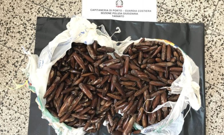 TARANTO – Nell’ambito di una più vasta azione di controllo relativa alla tutela dell’ambiente marino e alla repressione della pesca illegale, si è svolta nei giorni scorsi un’operazione del nucleo di polizia ambientale della Direzione Marittima di Bari che ha portato, in data 18/10/2017, al sequestro di 3 Kg di datteri , appositamente occultati dietro un telo in località Città vecchia – discesa Vasto nel Comune di Taranto e successivamente, in data 21/10/2017, al sequestro di ulteriori Kg. 8,250 di datteri, celati all’interno dell’abitacolo di un’autovettura, sempre a Taranto, in località Viale Unità d’Italia con il conseguente deferimento all’autorità giudiziaria degli autori delle violazioni.