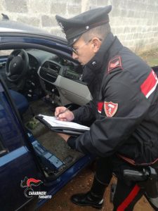 I militari, impiegati in uno specifico servizio finalizzato al controllo delle persone sottoposte a misure di prevenzione e sicurezza, si sarebbero recati presso l’abitazione del 23enne per procedere ad un controllo. Dopo aver più volte citofonato all’abitazione del predetto, senza ricevere alcuna risposta, i militari avrebbero dunque effettuato un’ispezione del perimetro esterno del casolare, sorprendendo all’interno di uno spazio all’aperto, adiacente al garage dell’abitazione, Mazza Gianluca in compagnia di un 16enne del posto, mentre erano intenti a smontare parti della carrozzeria e del motore di un’autovettura risultata poi essere provento di furto consumato il giorno precedente a Porto Cesareo (Le).