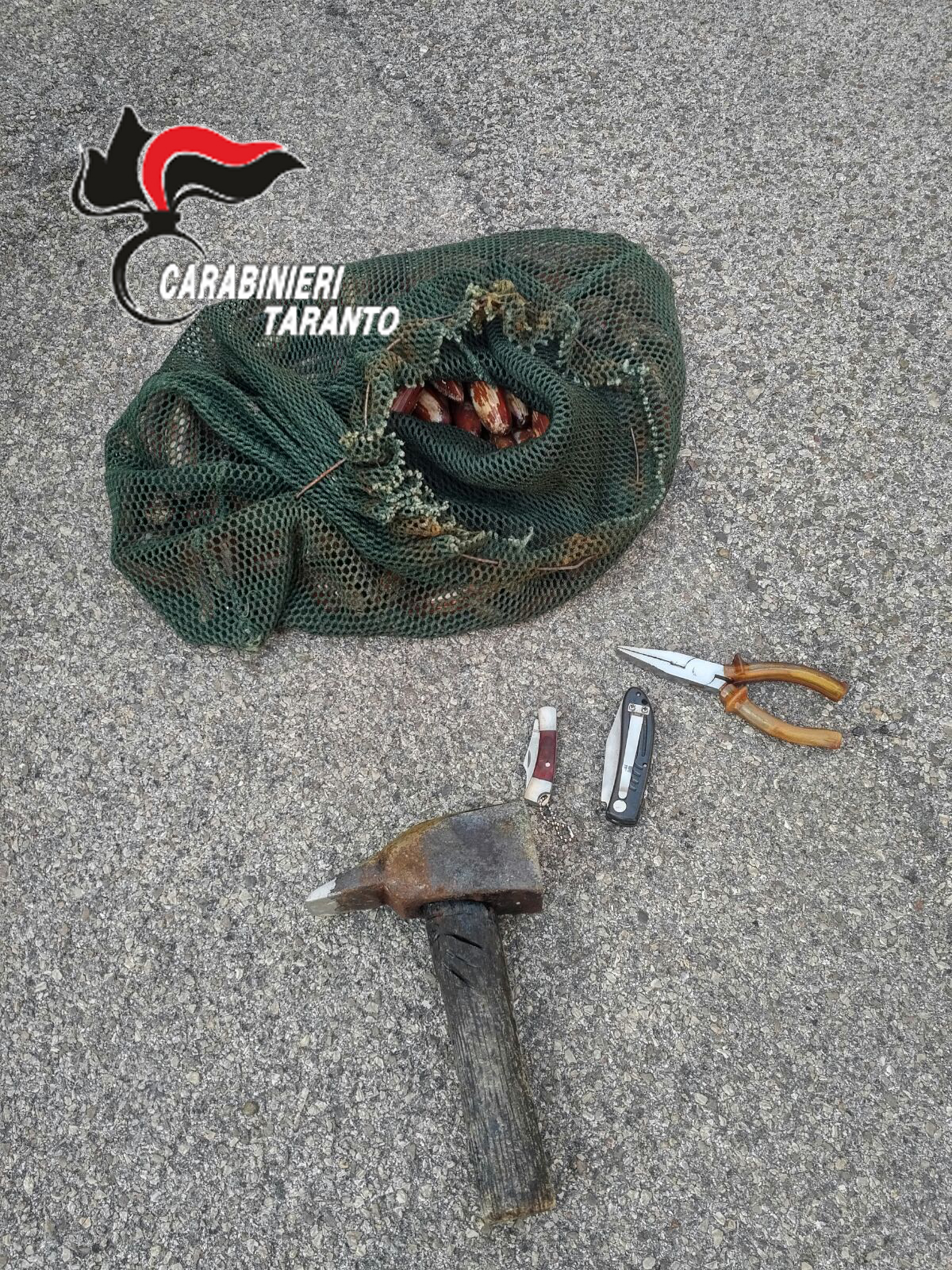L’uomo alla guida, che vestiva una muta da sub ancora bagnata, è stato poi sottoposto ad una perquisizione personale e veicolare; proprio quest’ultima avrebbe permesso di rinvenire, nell’abitacolo del veicolo, circa 5 Kg. di datteri di mare (lithophaga lithophaga) nonché attrezzi vari, un martello, una pinza e 2 coltellini, presumibilmente utilizzati dal 27enne per asportare gli organismi marini, che sono stati sequestrati e successivamente distrutti a mezzo di un auto compattatore dell’AMIU.