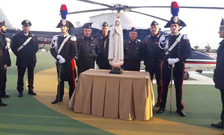SAN GIOVANNI ROTONDO – Si rinnova a San Giovanni rotondo un singolare evento di Fede. E’ tornata oggi, a bordo di un velivolo del 6° Elinucleo dei Carabinieri, per la terza volta la statua originale della Madonna Pellegrina di Fatima, la stessa che Padre Pio venerò nel 1959, ottenendo poche ore dopo la guarigione da una grave infermità. La Sacra effige sarà ospitata dal Santuario Santa Maria delle Grazie di San Giovanni Rotondo fino a lunedi 27 p.v..