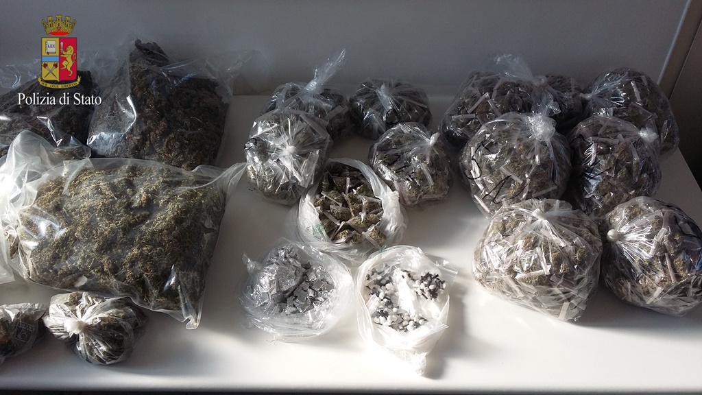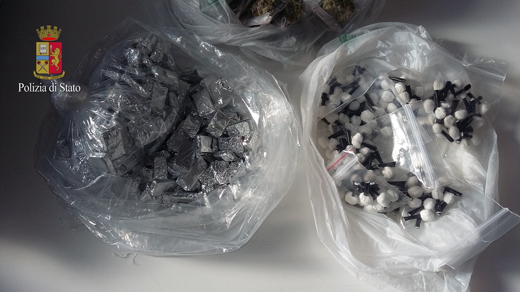 L’attività, estesa al locale in questione, ha consentito di rinvenire e sequestrare 60 gr di cocaina, 4,5 Kg di marijuana e 350 gr di hashish. La sostanza stupefacente, per un peso complessivo di poco meno di 5 Kg., era già suddivisa in dosi e pronta per essere immessa sul mercato.