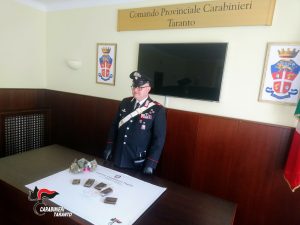 Carparelli, all’esito dell’attività, veniva condotto nella caserma di Viale Virgilio e al termine delle formalità di rito, tratto in arresto. Successivamente, così come disposto dal P.M. di turno presso la locale Procura della Repubblica, Dr. Mariano Buccoliero, il 38enne veniva tradotto presso la Casa Circondariale del capoluogo jonico a disposizione dell’A.G.. La sostanza stupefacente rinvenuta, sottoposta a sequestro, sarà analizzata dai militari del L.A.S.S. del Reparto Operativo del Comando Provinciale Carabinieri di Taranto.