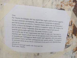 Così potrebbe essere riassunta una lettera affissa in alcune vie di Taranto, quelle che costeggiano il nosocomio del SS Annunziata di Taranto.