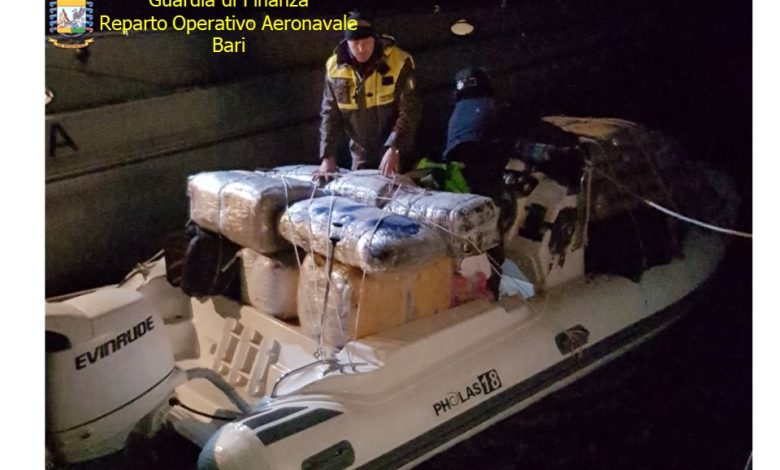 In particolare, alle 20,00 di domenica sera, i militari a bordo di due unità velocissime del Reparto Operativo Aeronavale della Guardia di Finanza di Bari, intimavano l’alt ai presunti trafficanti che cercavano di darsi alla fuga aumentando la velocità verso il largo, nonostante il grosso carico trasportato sul piccolo natante. Iniziava, quindi, un inseguimento, che si concludeva, poco dopo, con l’abbordaggio dell’imbarcazione fuggitiva da parte degli uomini delle Fiamme Gialle, a poche miglia al largo di San Cataldo (LE).