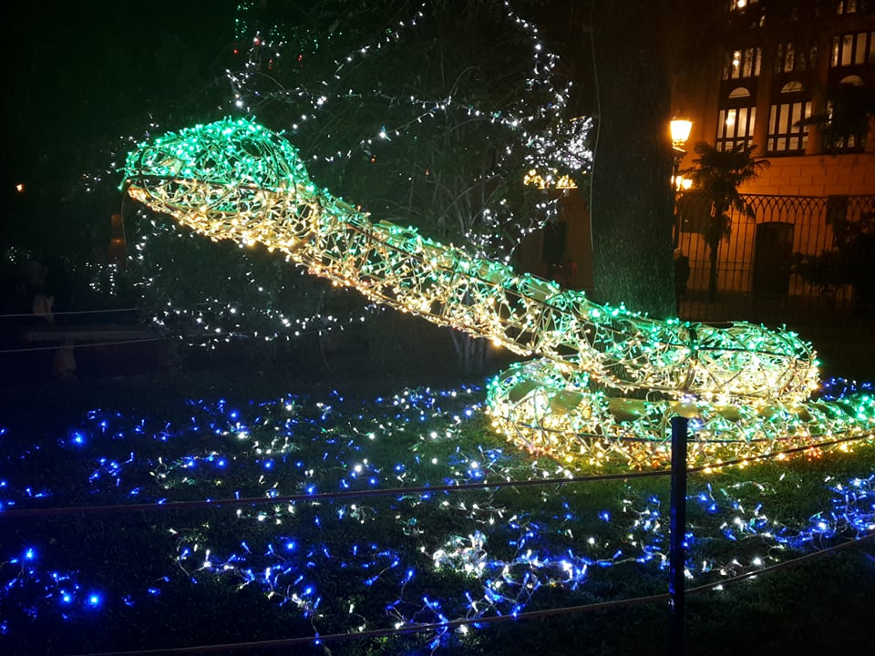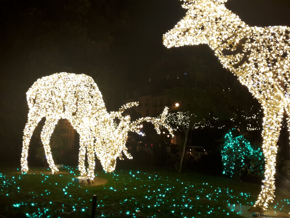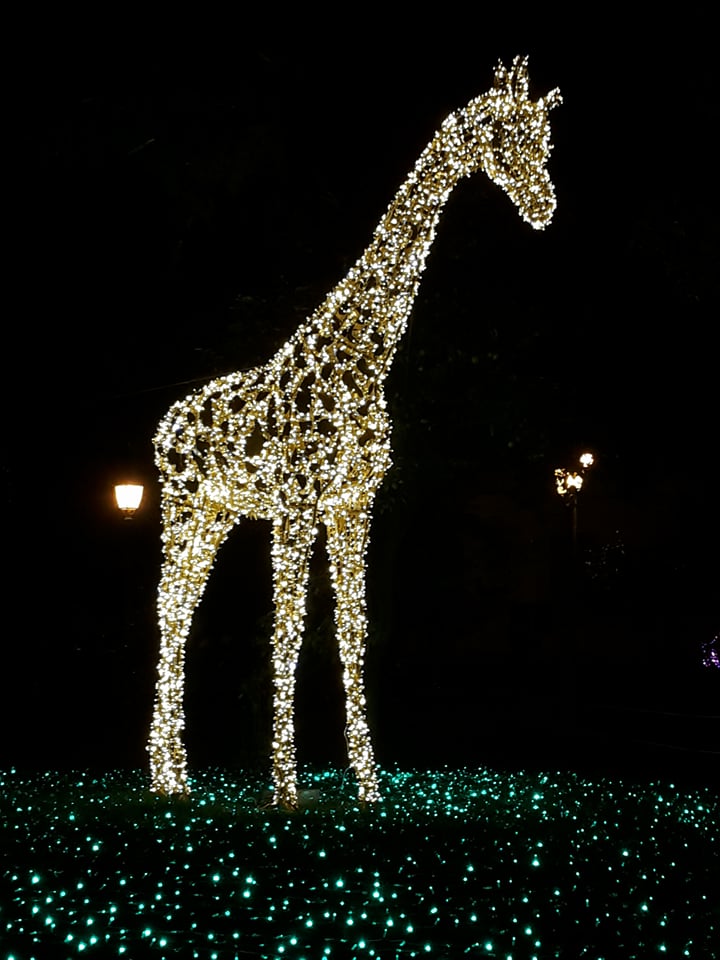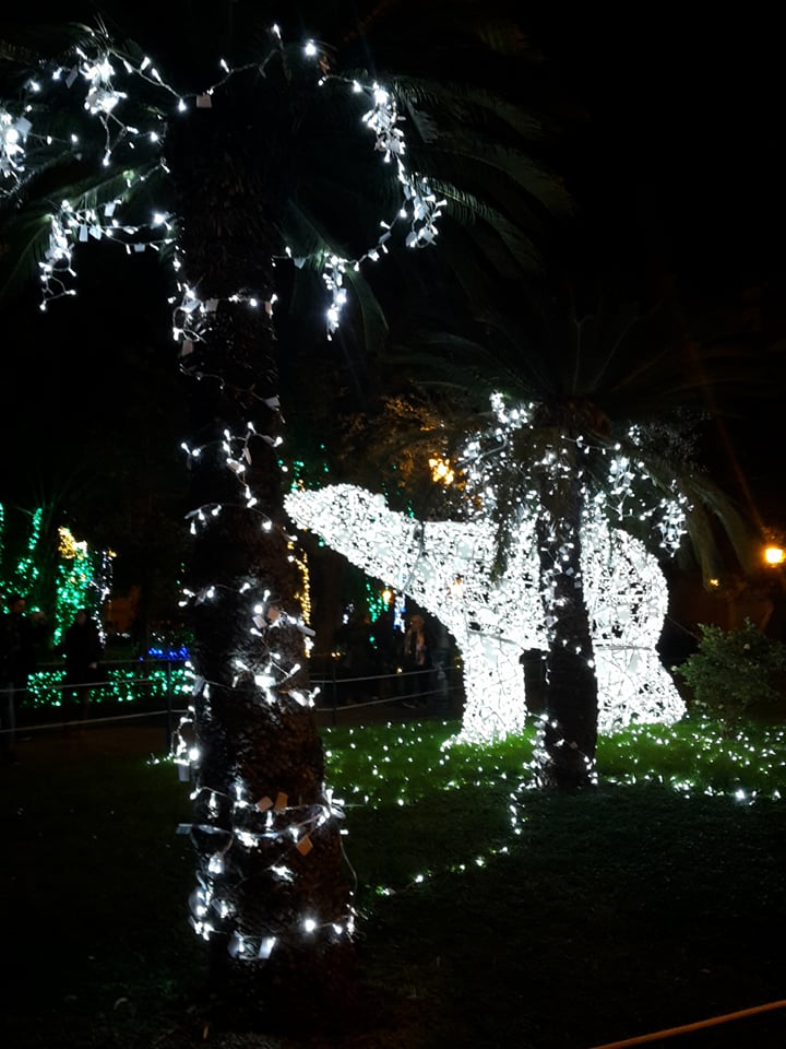 Nella Villa Comunale dove, come sempre in ogni edizione, si concentrano diverse spettacolari installazioni luminose,quest’anno vive un vero e proprio zoo, con tante sagome tridimensionali di animali di varie forme e colori disseminati tra i suoi viali: uno spettacolare leone,un bisonte,dei cervi,una maestosa giraffa,degli splendidi fenicotteri posati su uno stagno, e una mastodontica balena, ennesimo gioiello di questa kermesse, una creazione che tanto ha conquistato l’attenzione dei visitatori, dei grandi ma soprattutto dei più piccoli.